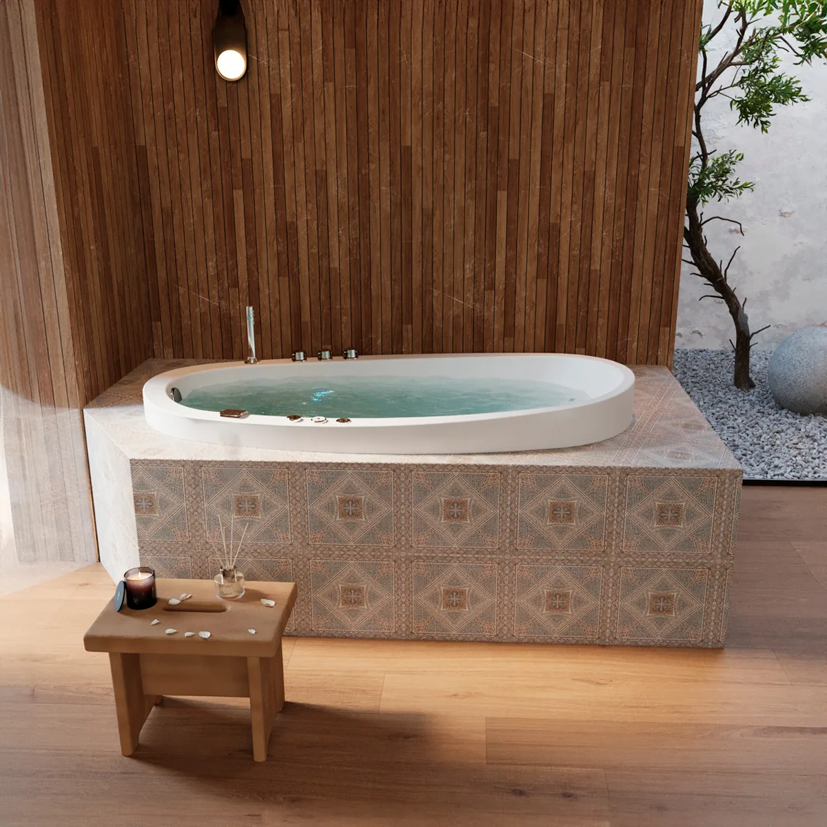 Jacuzzi de empotrar ideal para una persona, diseño ergonómico con 8 potentes jets para realizar masajes en las principales zonas musculares del cuerpo. Vive la mejor experiencia de relajación y descanso con tu Spa en casa. Su diseño permite una fácil instalación sobre mampostería, piedra o madera.
