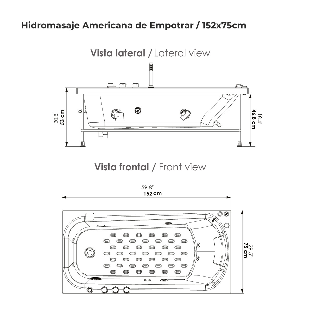 JACUZZI / HIDROMASAJE AMERICANA PARA EMPOTRAR / 152X75