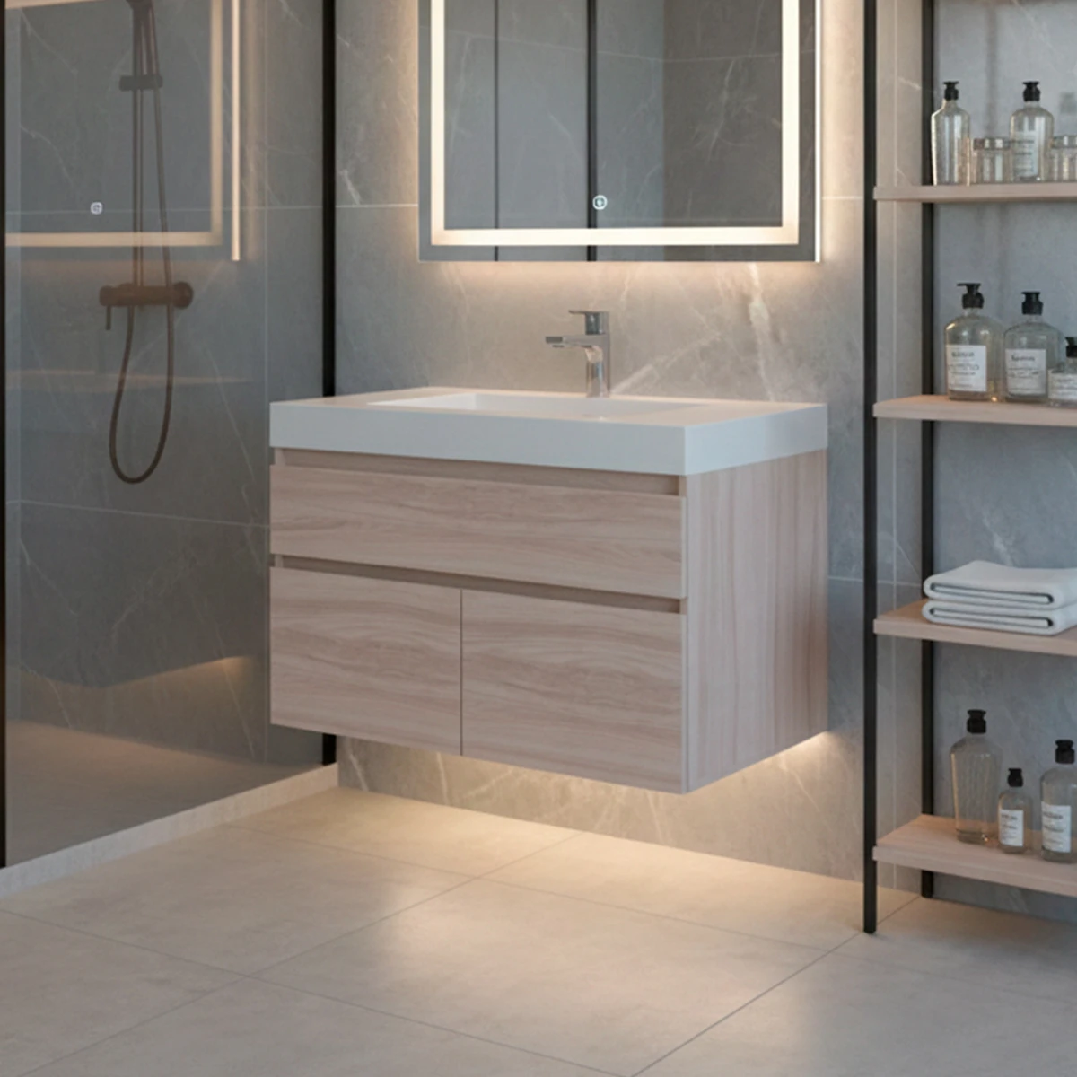 Combinación perfecta entre el lavamanos con diseño moderno y mueble Macao con amplio espacio de almacenamiento, elegante y fácil de armar, conjunto que evoca estilo y practicidad para su baño.