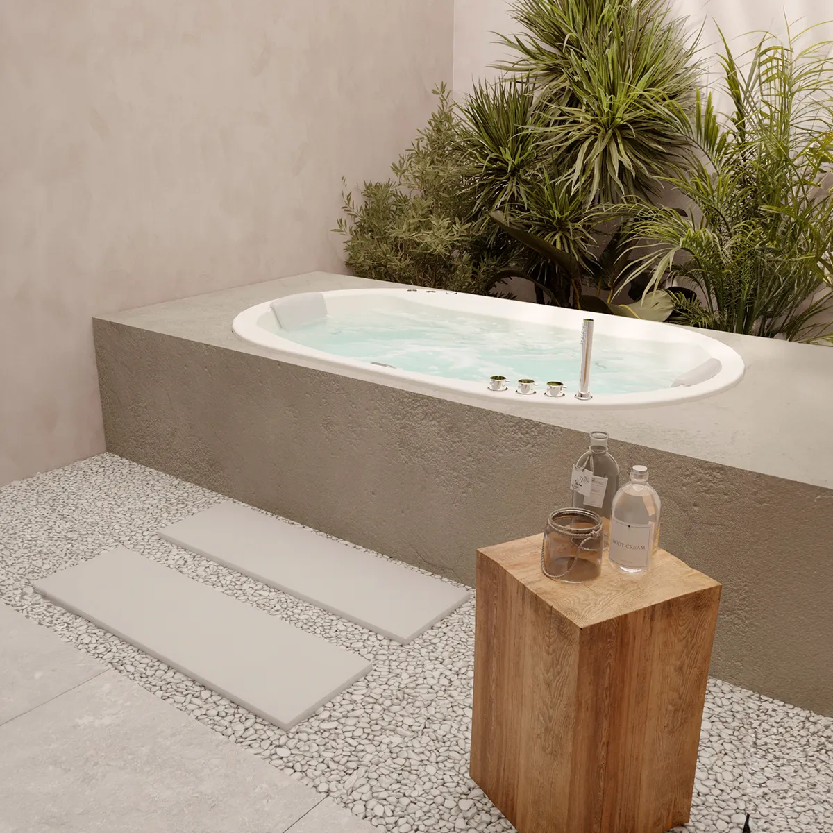 Jacuzzi de empotrar ideal para dos personas, diseño ergonómico con 8 potentes jets para realizar masajes en las principales zonas musculares del cuerpo. Vive la mejor experiencia de relajación y descanso con tu Spa en casa. Su diseño permite una fácil instalación sobre mampostería, piedra o madera.