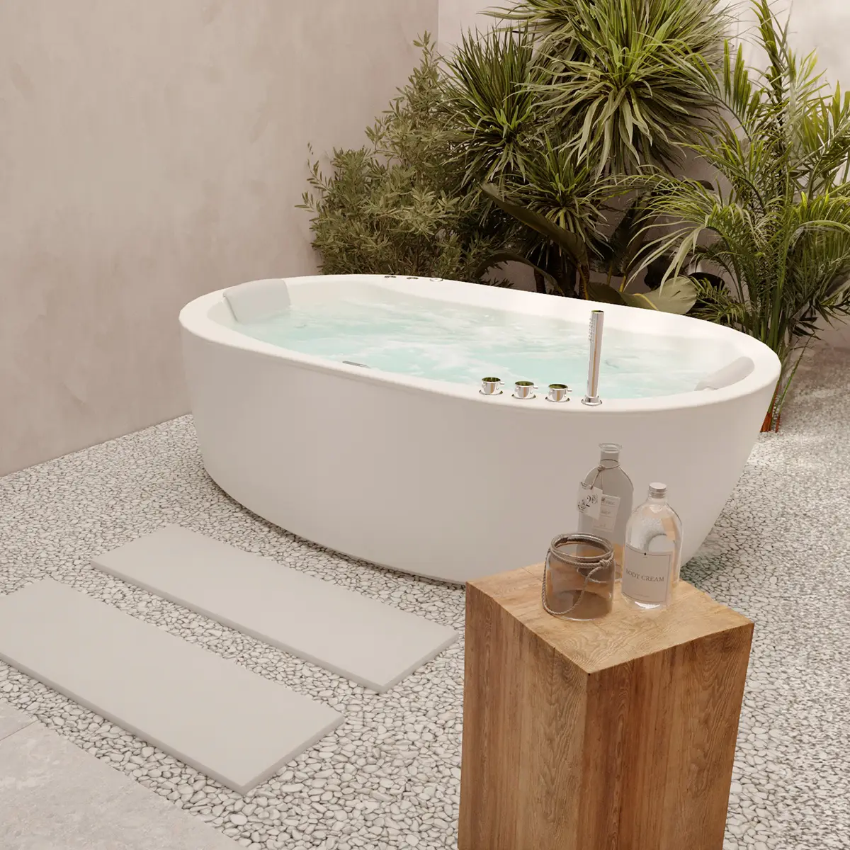 Jacuzzi portátil ideal para dos personas, diseño ergonómico con 8 potentes jets para realizar masajes en las principales zonas musculares del cuerpo. Vive la mejor experiencia de relajación y descanso con tu Spa en casa.