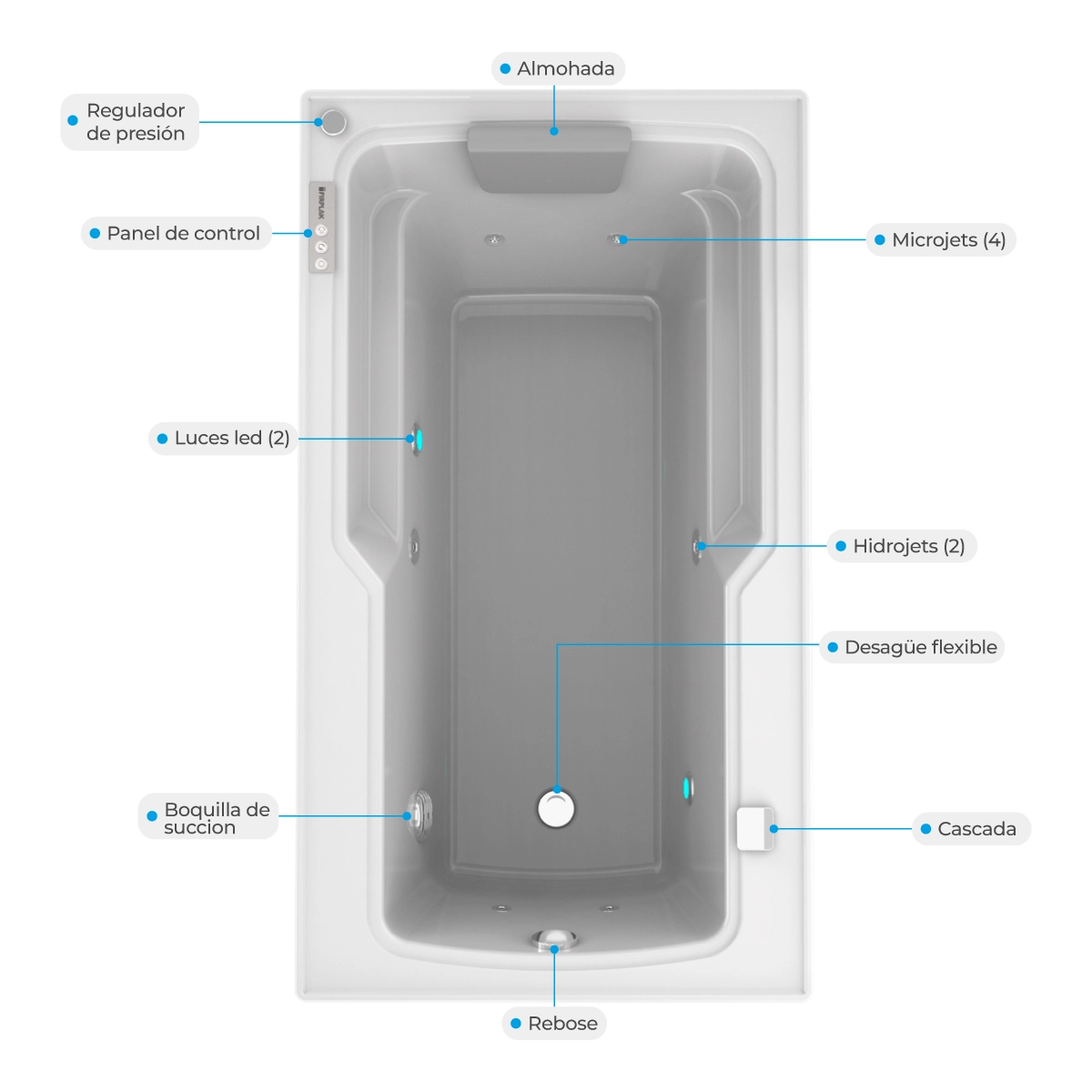 | Jets (Salidas de agua) 6 | Luces led (2) |