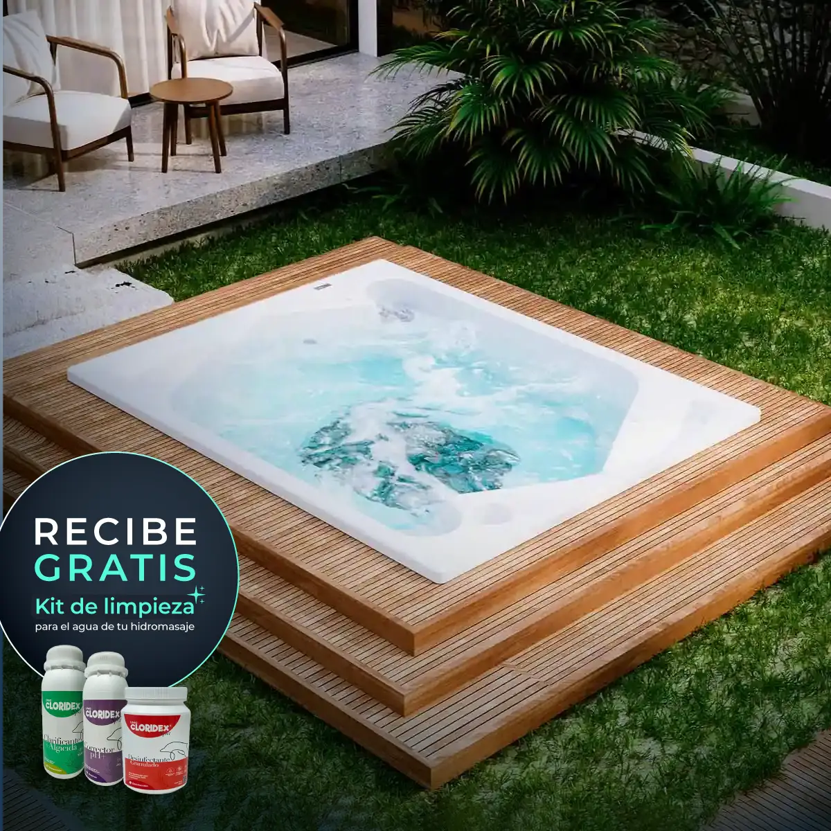 Jacuzzi de empotrar para interior o exterior, ideal para 8 personas, diseño ergonómico con 25 potentes hidrojets para realizar masajes en las principales zonas musculares del cuerpo. Vive la mejor experiencia de recreación, relajación y descanso con tu Spa en casa. Su diseño permite una fácil instalación sobre mampostería, piedra o madera.