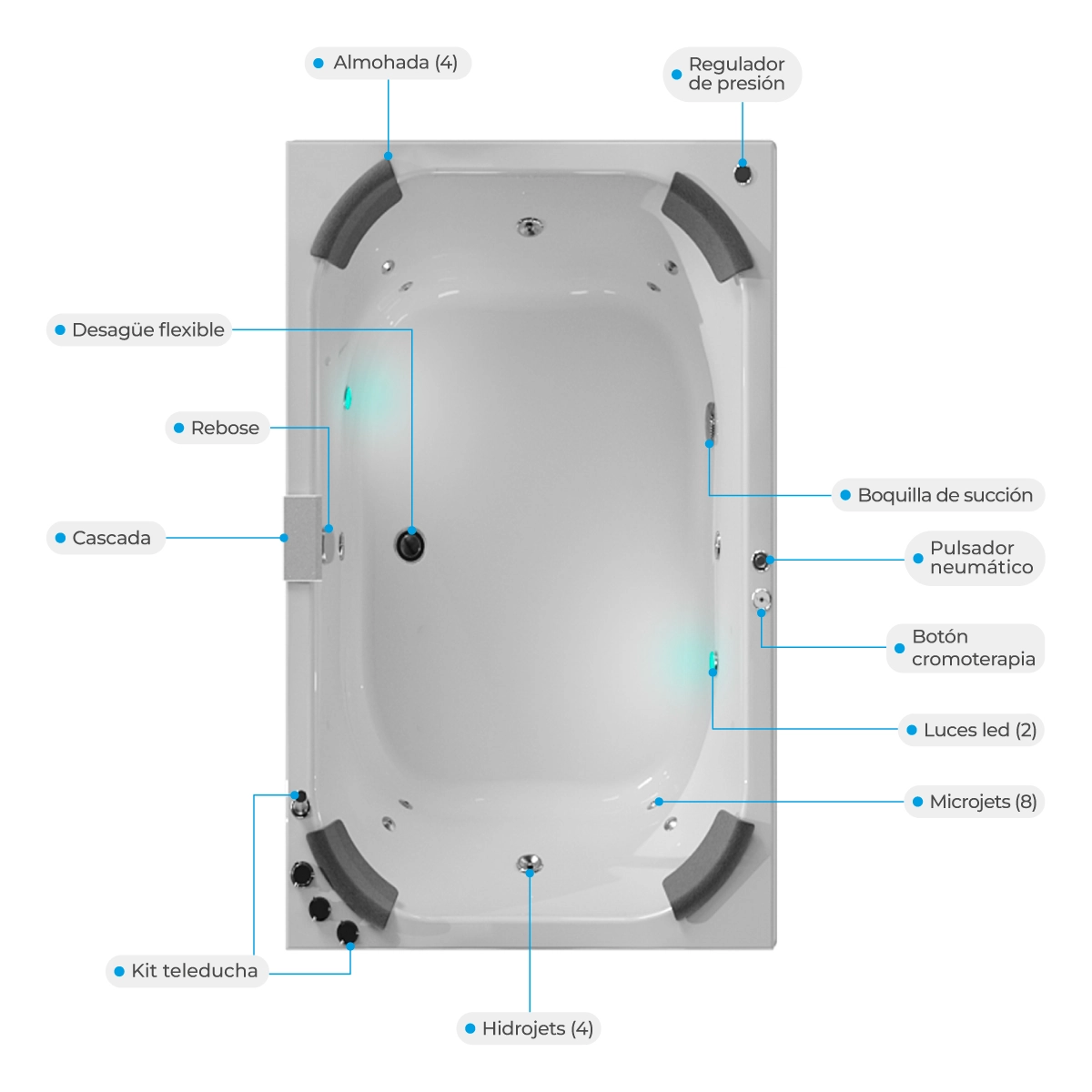 | Jets (Salidas de agua) 12 | Luces led (2) |