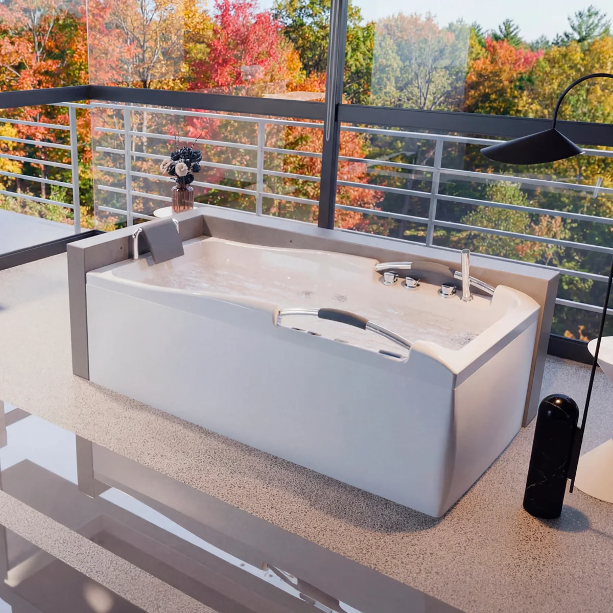 Jacuzzi portátil de interior ideal para una persona, diseño ergonómico con 9 potentes jets para realizar masajes en las principales zonas musculares del cuerpo. Vive la mejor experiencia de relajación y descanso con tu Spa en casa.