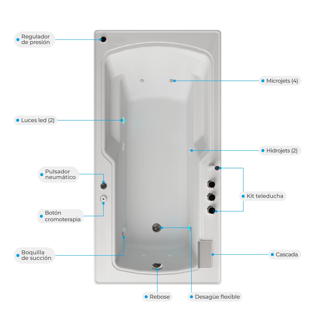 | Jets (Salidas de agua) 6 | Luces led (2) |