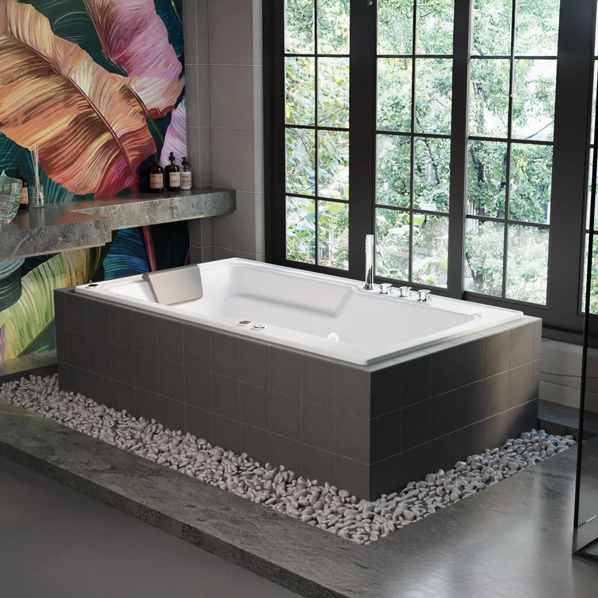 Jacuzzi de empotrar ideal para una persona, diseño ergonómico con 6 potentes jets para realizar masajes en las principales zonas musculares del cuerpo. Vive la mejor experiencia de relajación y descanso con tu Spa en casa. Su diseño permite una fácil instalación sobre mampostería, piedra o madera.