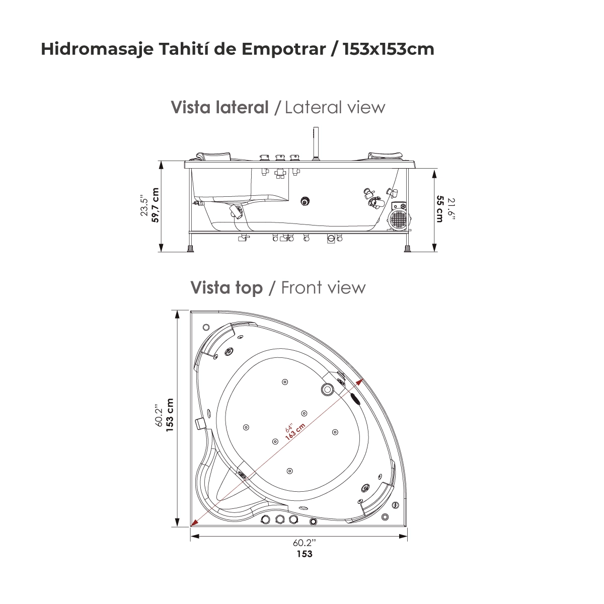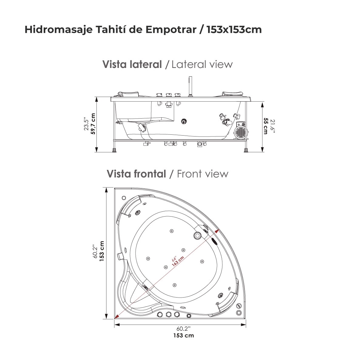 HIDROMASAJE TAHITI 153X153 / EMPOTRAR