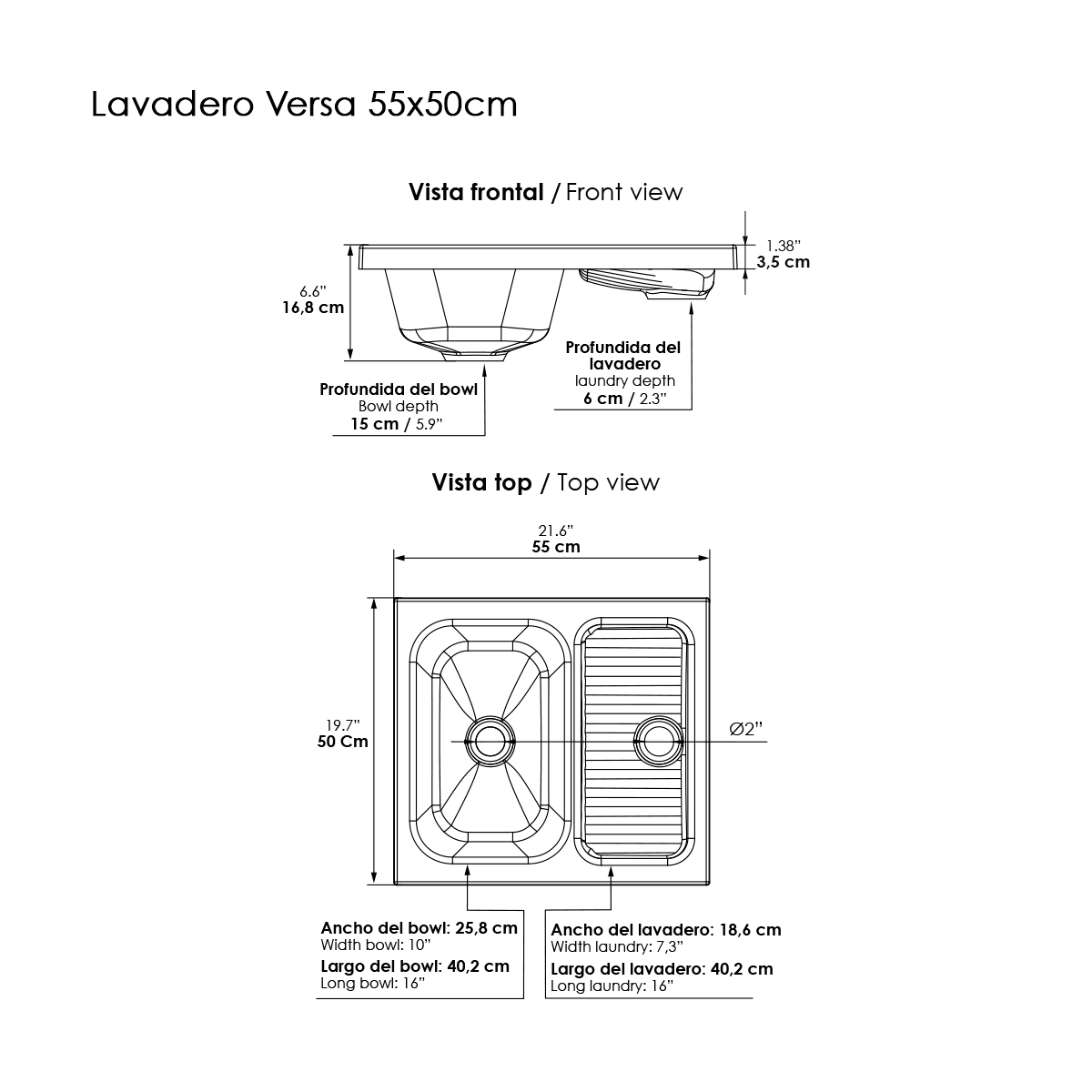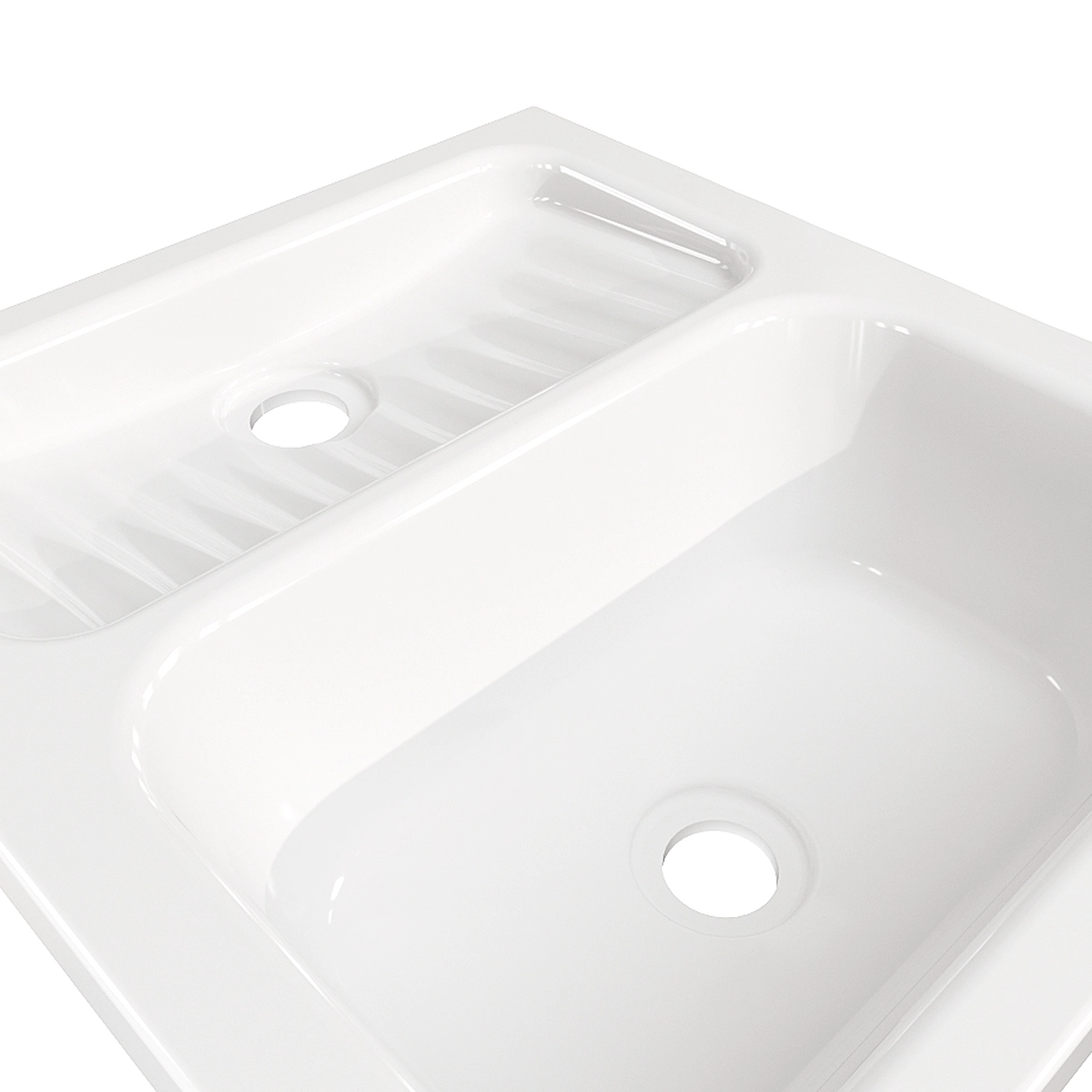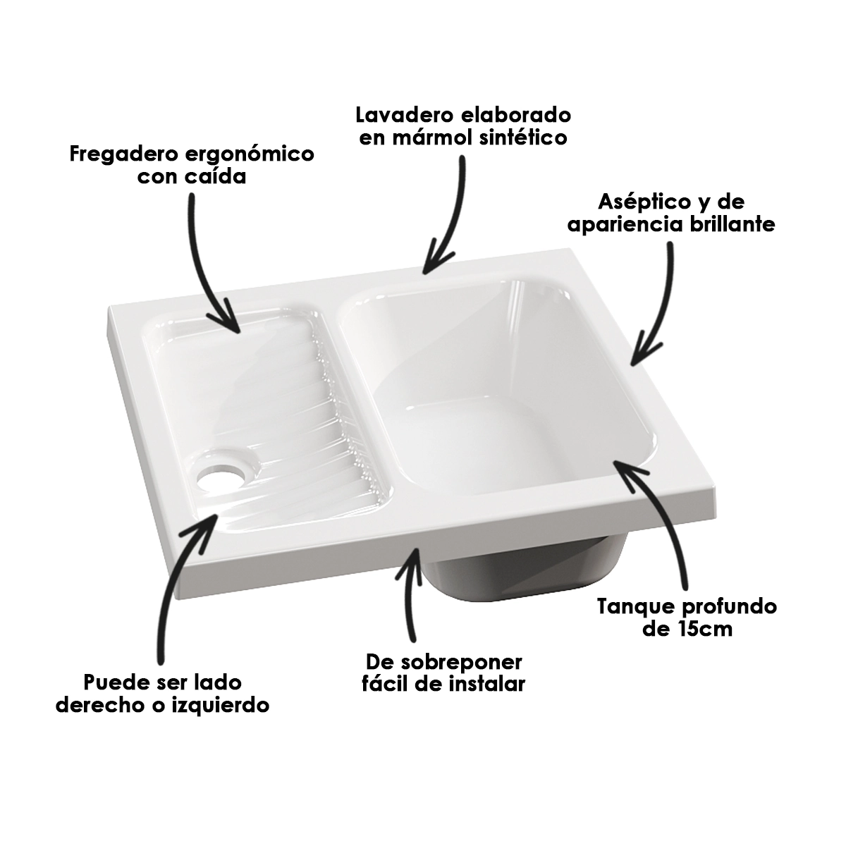 NUEVO Lavadero Versa de sobreponer | 55x50cm de Firplak, elaborado en mármol sintético con un diseño cómodo y funcional. Es perfecto para espacios reducidos, además cuenta con un fregadero ergonómico con caída y un tanque profundo independiente que optimizará el lavado de tus prendas.