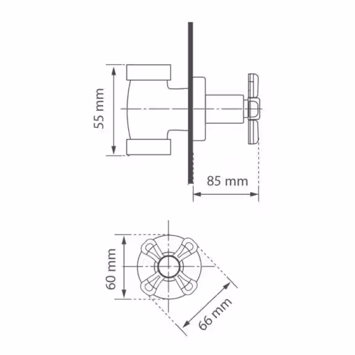 Llave para duchas y lavaderos, MARCA GRICOL. Cierre fácil de 1/4 de giro, material metálico, cromada resistente al desgaste y la corrosión.