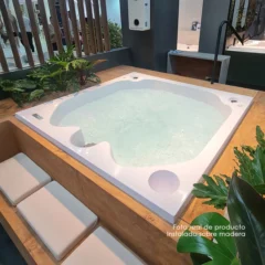 Jacuzzi de empotrar para interior o exterior, ideal para 4 personas, diseño ergonómico con 8 potentes hidrojets y 18 microjets para realizar masajes en las principales zonas musculares del cuerpo. Vive la mejor experiencia de recreación, relajación y descanso con tu Spa en casa. Su diseño permite una fácil instalación sobre mampostería, piedra o madera.