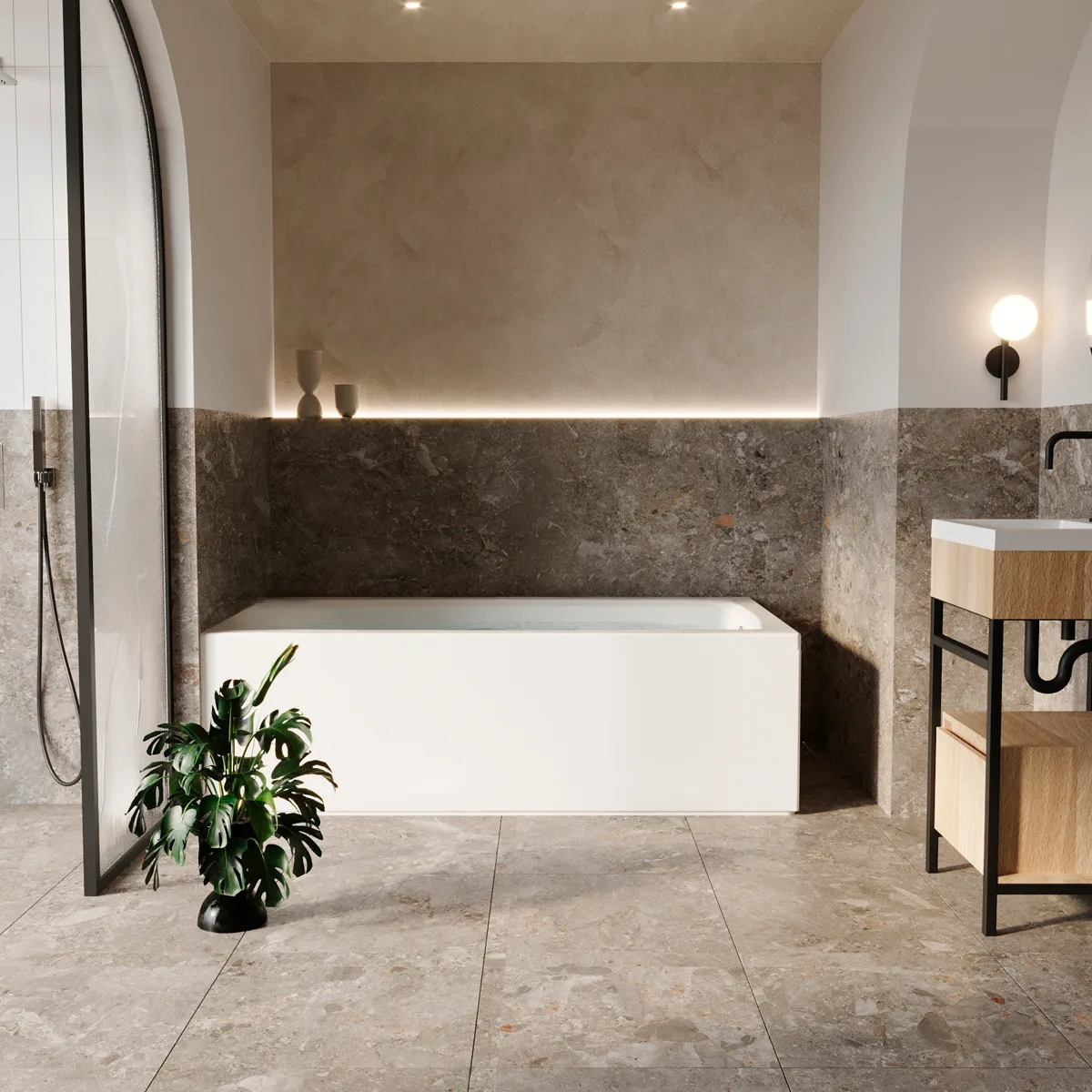 Tina para una persona Fabricado en poliéster reforzado con fibra de vidrio Tina con sistema auto portante.